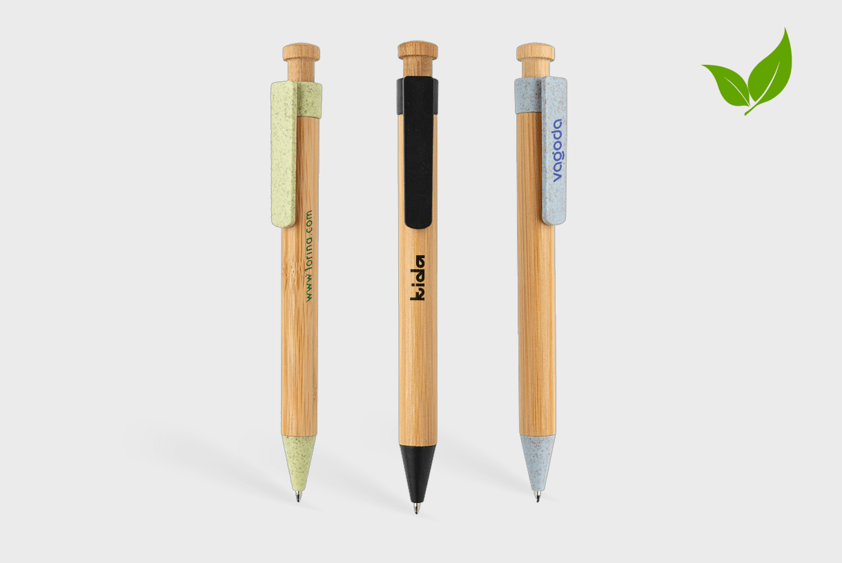 Deze bamboe pennen met tarwestro afwerking zijn perfect als groen promotiemiddel! Deze ideale schrijfgenoten laten duurzaamheid er prachtig uitzien. Ideaal voor giveaways, in goodiebags of om aan collega's te geven. Bedruk met je persoonlijke branding om te laten zien dat je om het milieu geeft. De pen is gemaakt van bamboe en tarwestro; tarwestro samenstelling van de clip is 40% tarwestro en 60% ABS. De pen schrijft met blauwe inkt en ligt perfect in de hand. Bestel de jouwe vandaag nog!