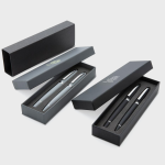 Een luxe promotie artikel om cadeau te geven aan je collega's, zakelijke relatie of als giveaway! Deze elegante pennenset is een passende optie voor jouw merk. De set bestaat uit 2 stijlvolle pennen, een balpen en een rollerpen. Ze hebben een matte afwerking en geven de perfecte subtiele en klassieke look. Beide pennen hebben de schrijfkleur blauw en de textuur van elke pen voelt zacht aan, waardoor het schrijven soepel verloopt. De gepersonaliseerde geschenkdoos geeft een verfijnde touch aan deze mooie set. Ideaal om een blijvende indruk te maken.<br><br>