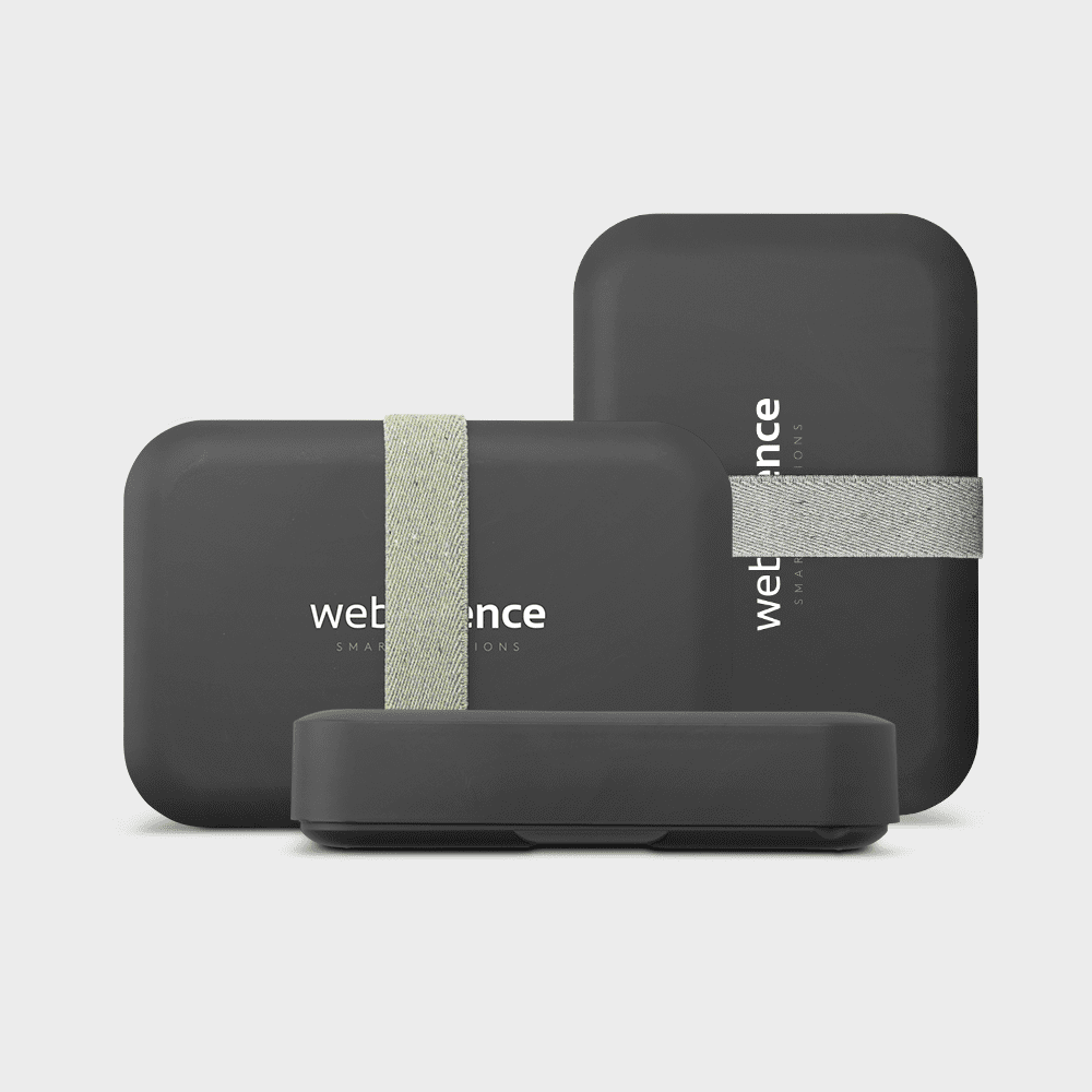 Draag bij aan het milieu met deze handige lunchbox van post-consumer gerecyclede plastic. De elastische band is gemaakt van upcycled denim en Tencel. Verstelbare hoogte voor het gemak. Perfect om je eten veilig te houden. Wordt geleverd in een individuele kartonnen geschenkverpakking.